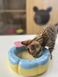 “Mèo con là những sinh linh nhỏ nhắn, cần được nuôi dưỡng kỹ từ những bữa ăn đầu đời. Mình hay kết hợp hạt khô cùng pate hoặc súp, cảm giác như bữa tiệc nhỏ khiến bé thích thú, không chán. Và điều mình khuyến nghị nhất – tuyệt đối không dùng sữa bò. Mình từng một lần đùa là “cho sữa bò cho mèo thì… mèo ‘bò’ ra ngoài thôi” – may là sau đó dùng sữa mèo chuyên dụng thì mọi chuyện yên bình trở lại!”
